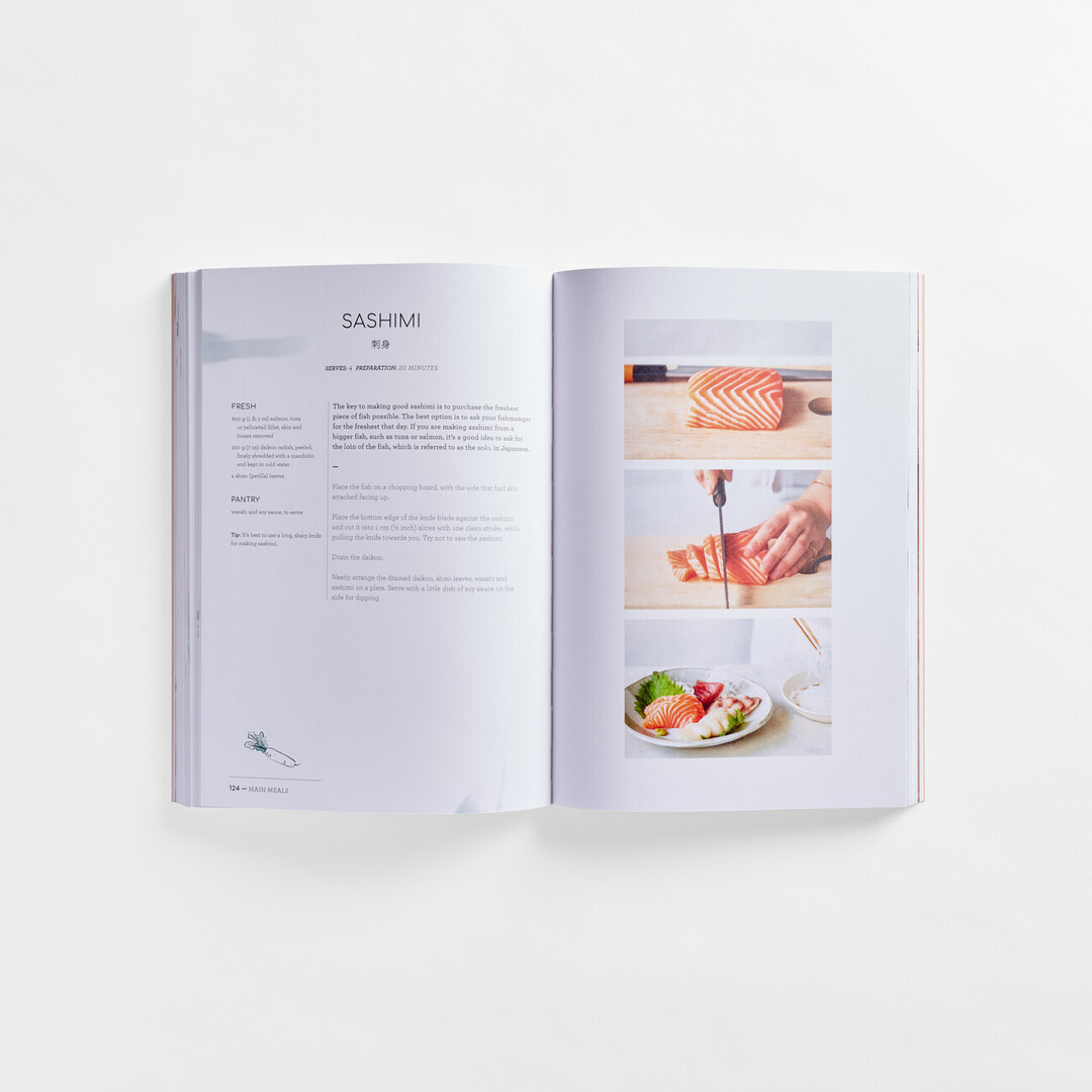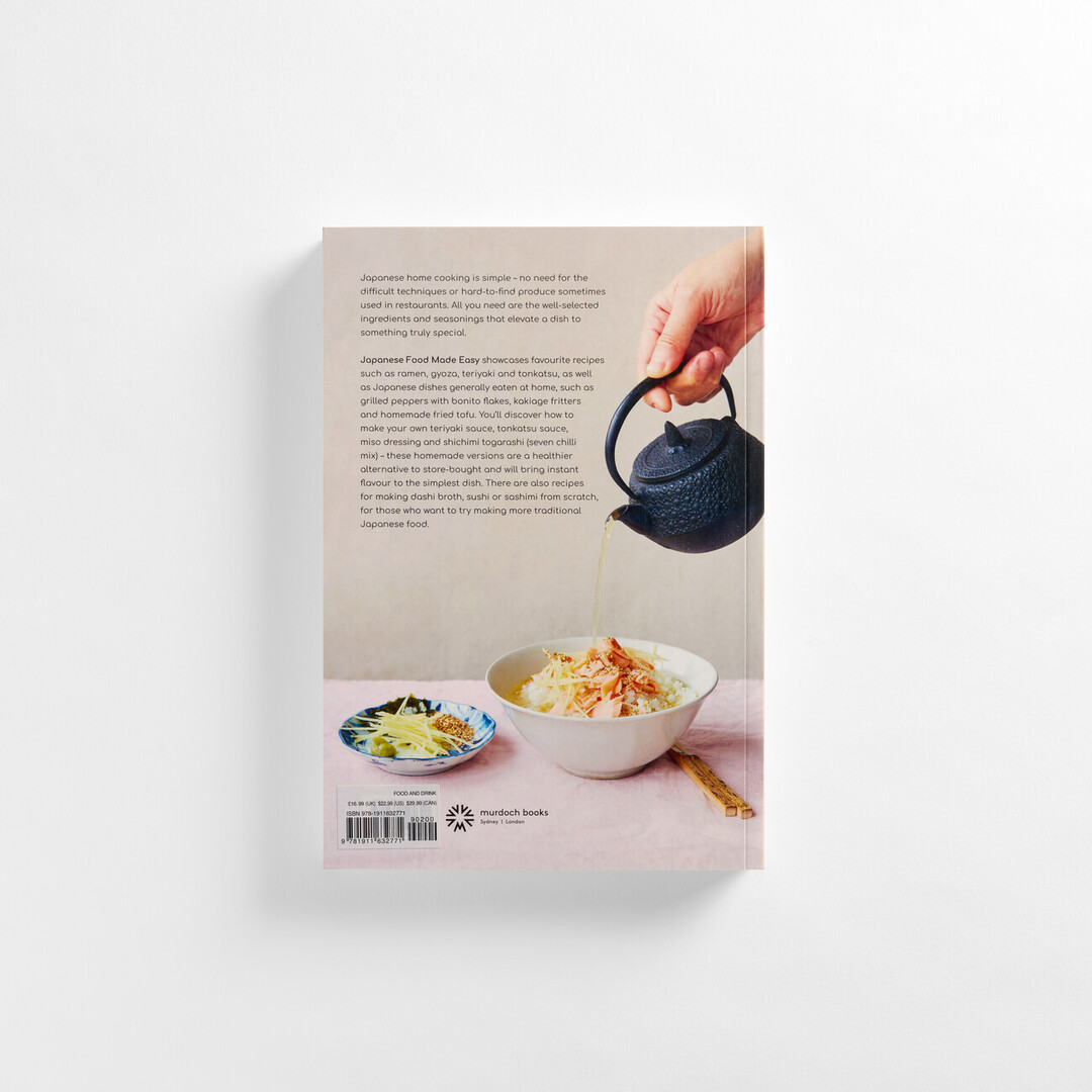 It also provides instructions for preparing essential condiments, including teriyaki sauce, miso dressing, and shichimi tōgarashi (seven-spice chilli seasoning). Recipes for dashi, sushi, and sashimi are included for those interested in more involved preparations. The book begins with an overview of key ingredients and is organized into sections covering side dishes, one-bowl meals, and main courses.
