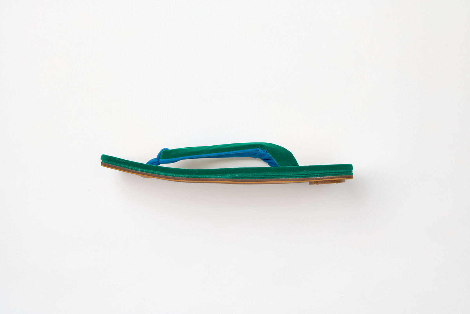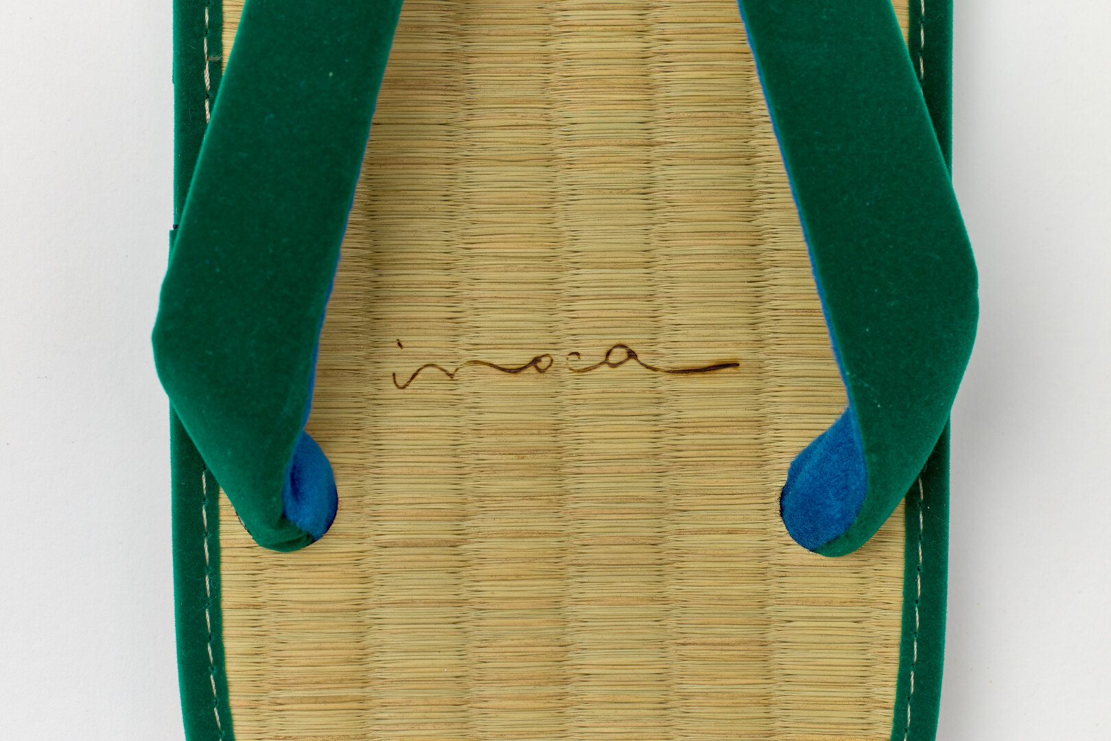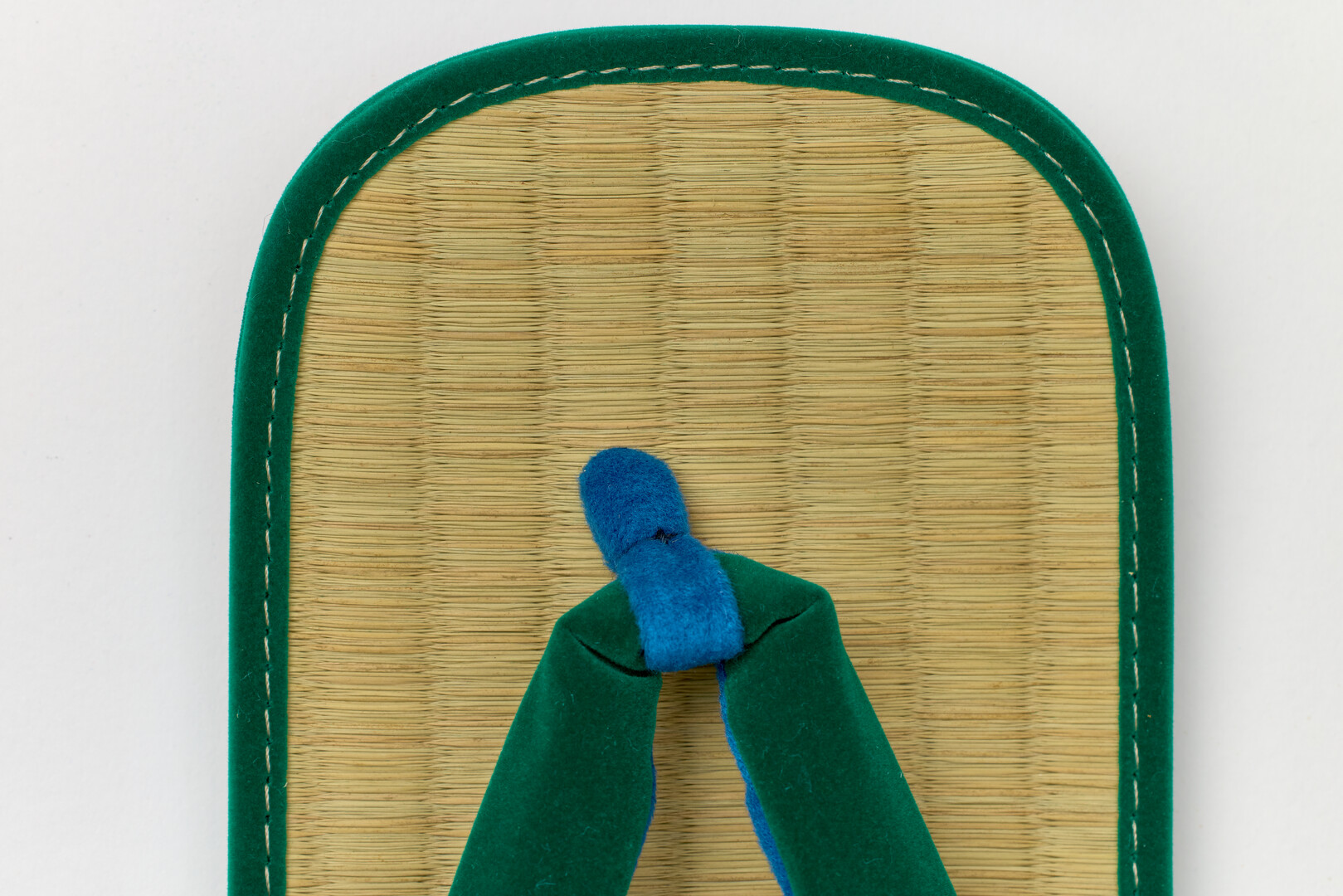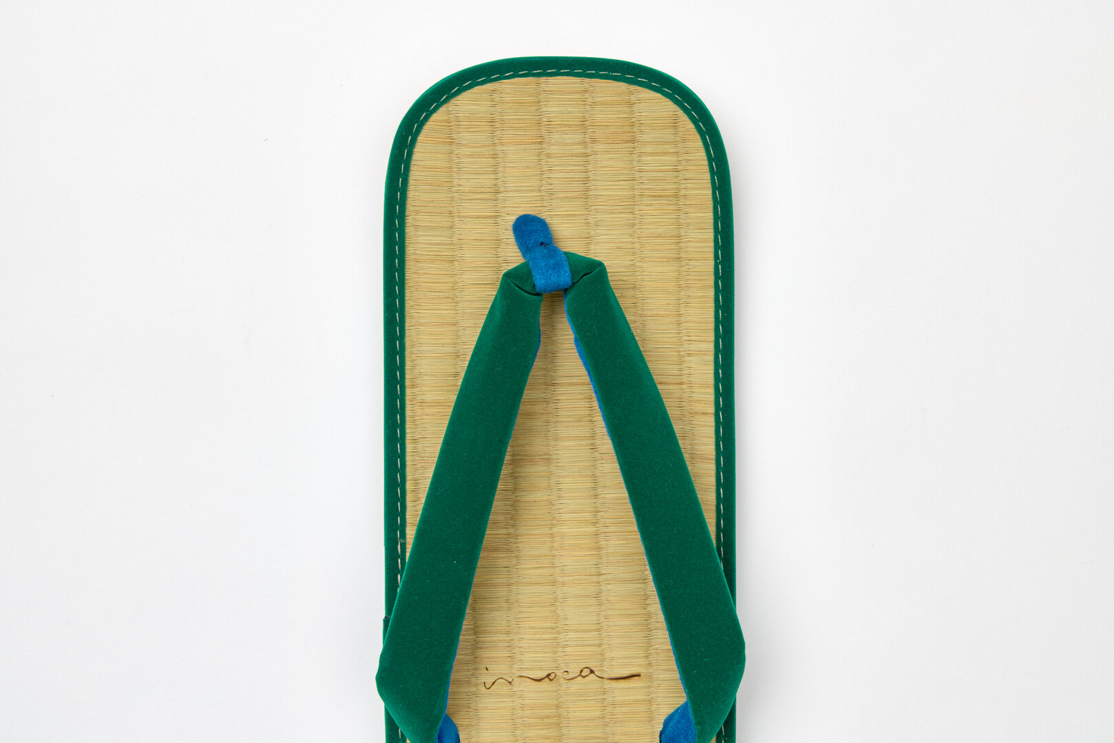 Setta is a type of split-toe Japanese footwear, often worn during the summer months. These are usually made by weaving bamboo sheets together and attaching a waterproof leather sole. This particular setta is made by craftspeople who, instead of bamboo use kishū igusa, a type of rush grass cultivated in Wakayama Prefecture, which has long been used as a material for weaving tatami mats. The scent of tatami, which is widely used in Japanese-style rooms, can be evocative and is also known for its air-purifying, deodorizing, and moisture-controlling properties. With tatami demand for interiors declining, these sandals were created to find a new use for igusa and continue to bring these beneficial qualities into people’s lives.