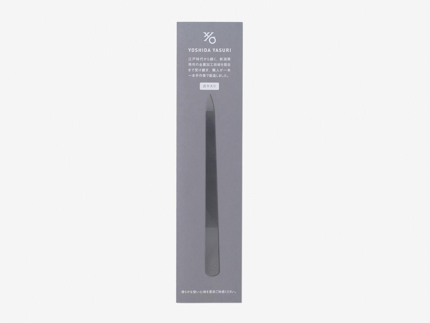These stainless steel nail files are crafted in Tsubame City, Niigata Prefecture, an area famous for its skilled metalworking heritage. Each file is produced by a craftsperson who repetitively strikes the stainless steel in a parallel motion to form each tooth. This thorough process is replicated to form three layers of teeth enabling the filing experience to be light in touch and smooth in movement. With a thickness of 1 mm, the file can get to hard-to-reach edges between the nail and the finger. Produced from one single sheet of stainless steel with no fixings, the form is robust and, unlike emery boards, the surface is hardwearing and durable. The pointed edge of the file is a characteristic shape for this manufacturer, and allows for the filing of nails which curve inwards and the cuticles of nails.